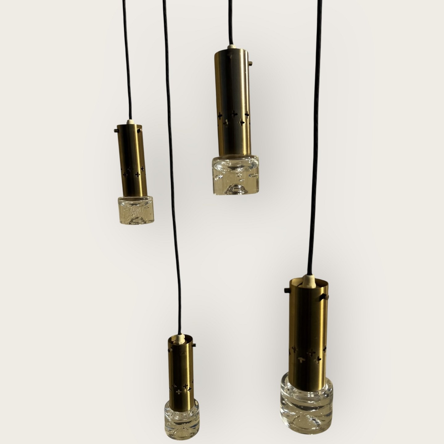 Free-hanging lamps in brass and glass, Sweden in the 1970s, Height 17.5cm, diameter 6cm, fine condition
