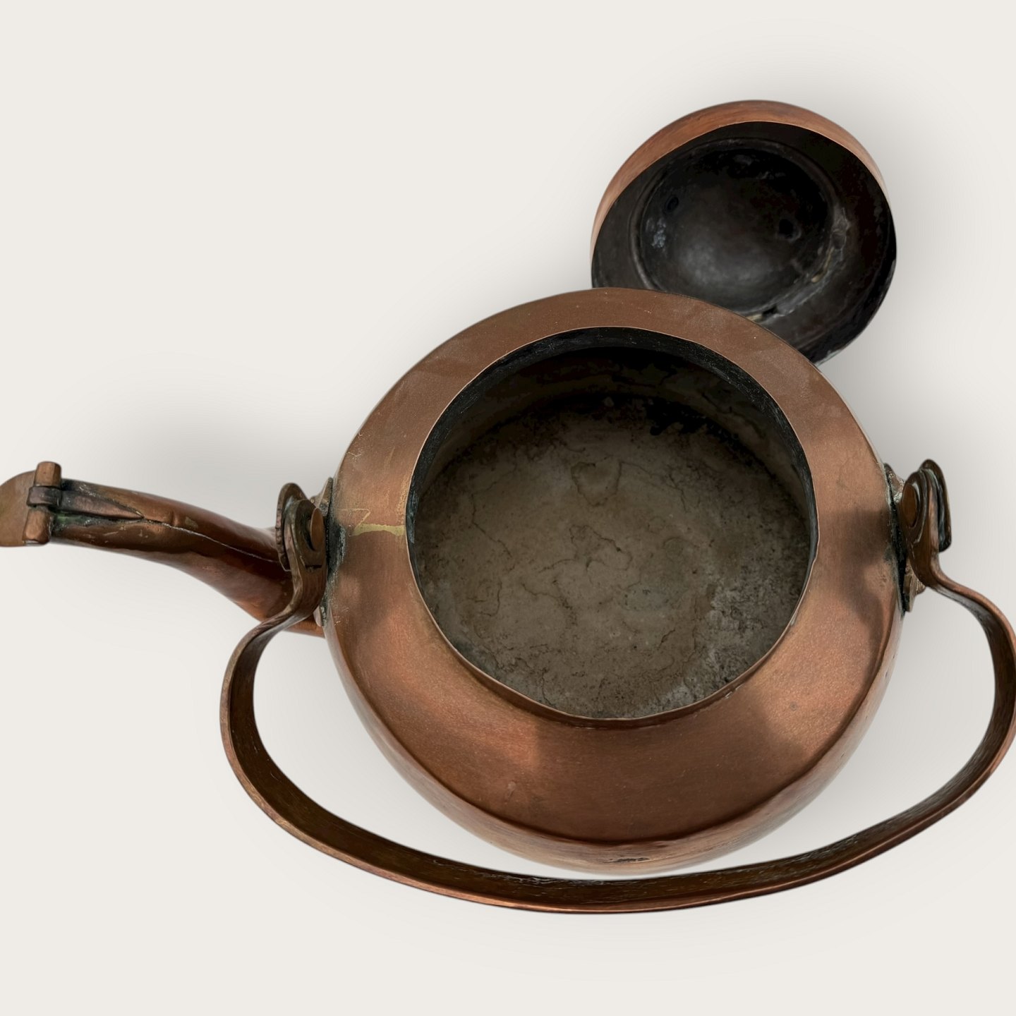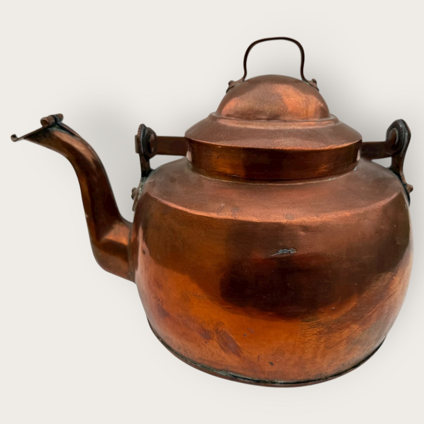 Beautiful old copper kettle, 35cm wide, 23cm high *Nice with age-related signs of wear*