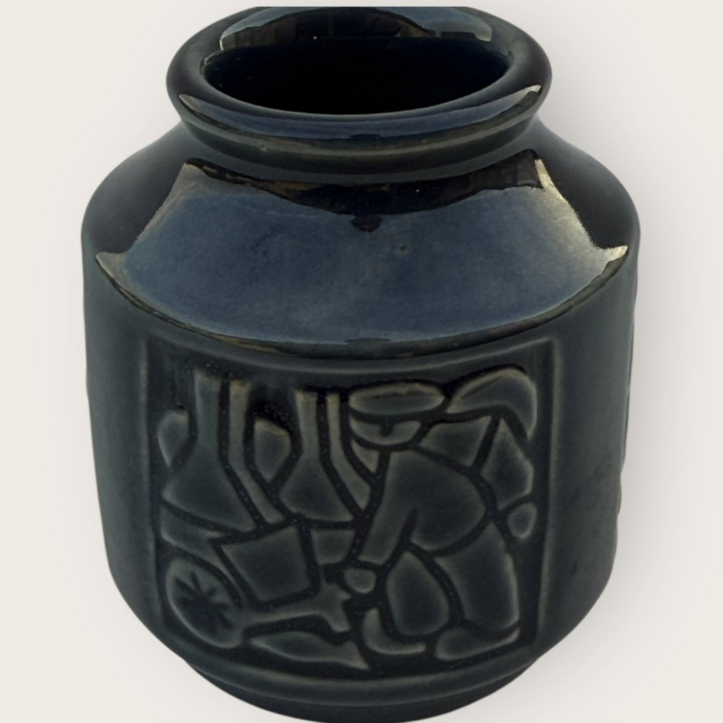 Bornholm ceramics, Michael Andersen, Small vase with motifs from Bornholm, smokehouses, fishermen's wives, etc. Height 8cm, diameter 6.5cm, #6123, fine condition.
