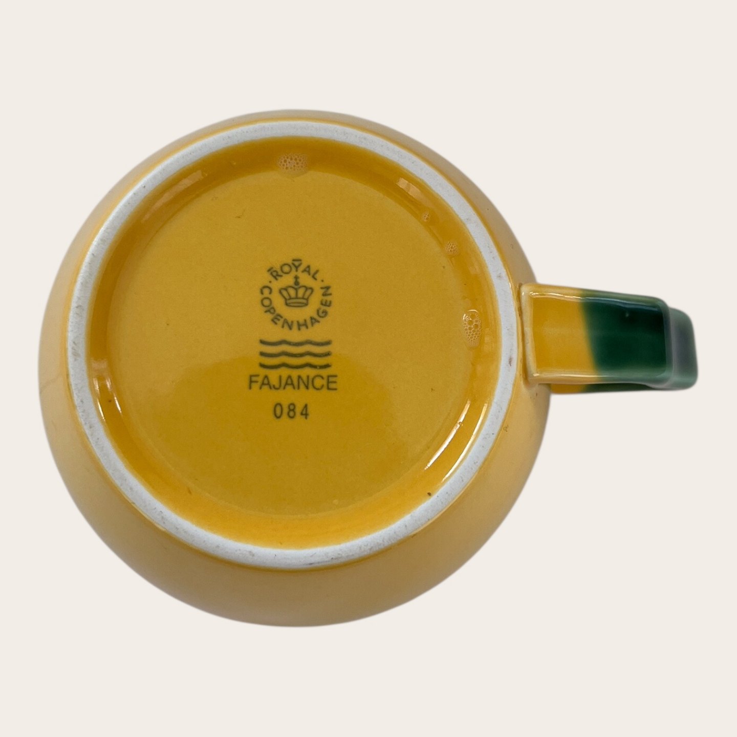 Royal Copenhagen, Aluminia, Ursula, Teacup, Yellow/Green #084, 1st sorting, 13cm wide, 7cm high, 9.5cm in diameter, Design Ursula Munch Petersen, 6 pcs. dark yellow, 4 pcs. slightly lighter yellow *Good condition*