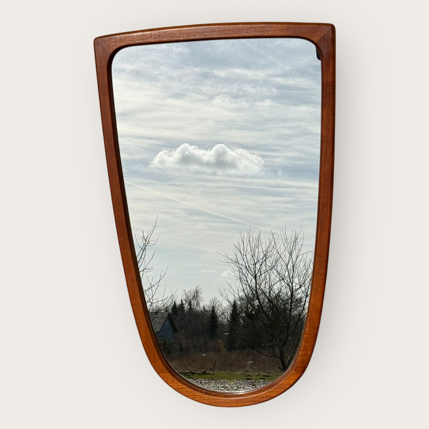 Mirror in a teak frame with a beautiful shape, Danish modern from the 1960s, Good condition, Dimensions: 75x46cm *Good condition*
