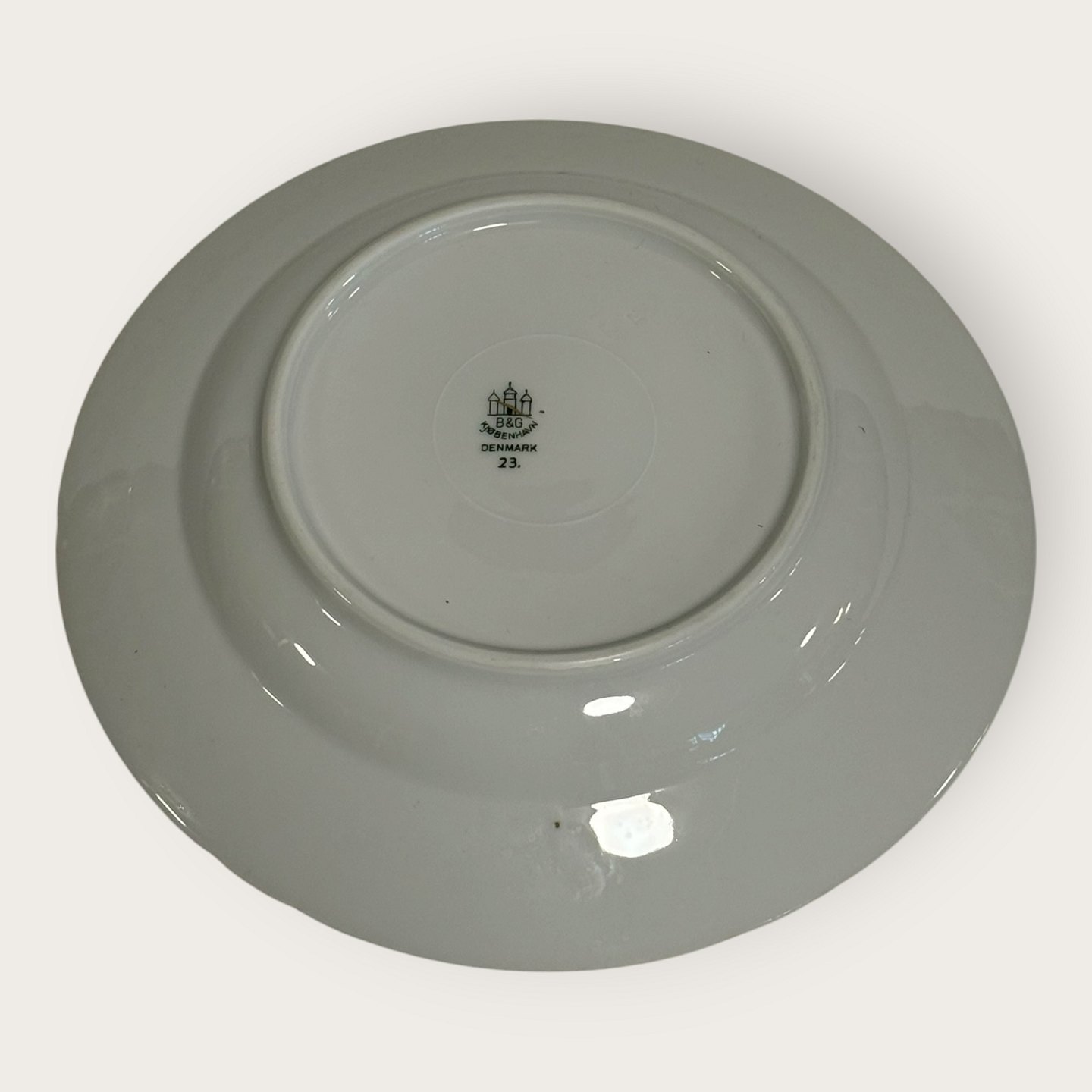 Bing & Grondahl, Aakjær, White porcelain with a gold rim, deep plate # 23, 21.5cm in diameter, 1st grade *Good condition*