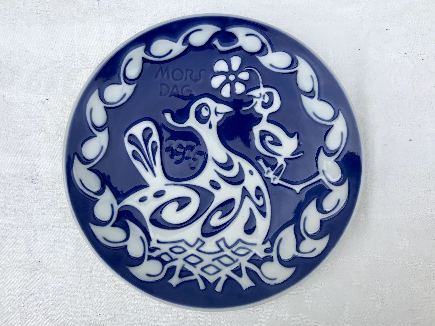 Royal Copenhagen, Muttertagsplatte, 1975, Vogel im Nest mit Jungen, 18 cm Durchmesser, Design Arne Ungermann * Guter Zustand *