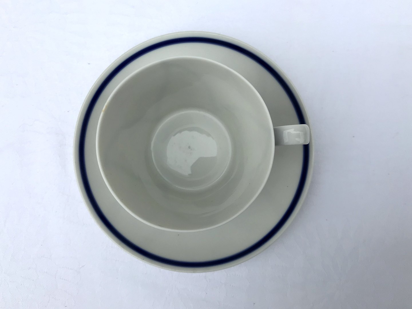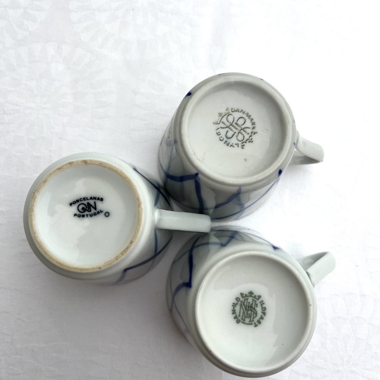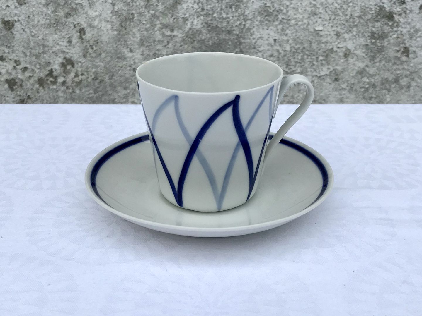 Lyngby, Danild 40, Harlekin, Blaue Flamme, Kaffeeservice, 7cm hoch, 7,5cm Durchmesser, 1. & 2. Klasse * Schöner gebrauchter Zustand mit verschiedenen Stempeln *