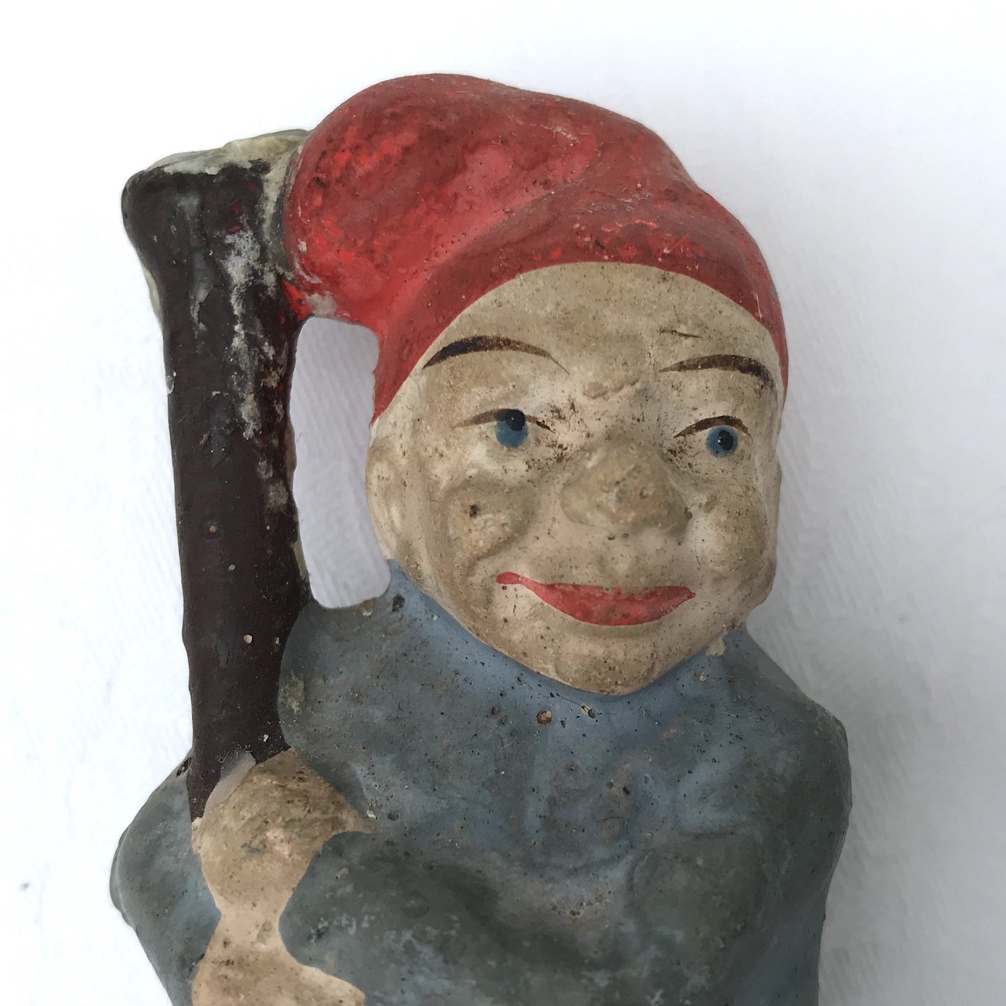 3 Stk. Alte Weihnachtsmannleuchter aus Gips und Terrakotta, 9-10 cm hoch, 3-4 cm im Durchmesser * Mit Gebrauchsspuren die Patina des Charmers *
