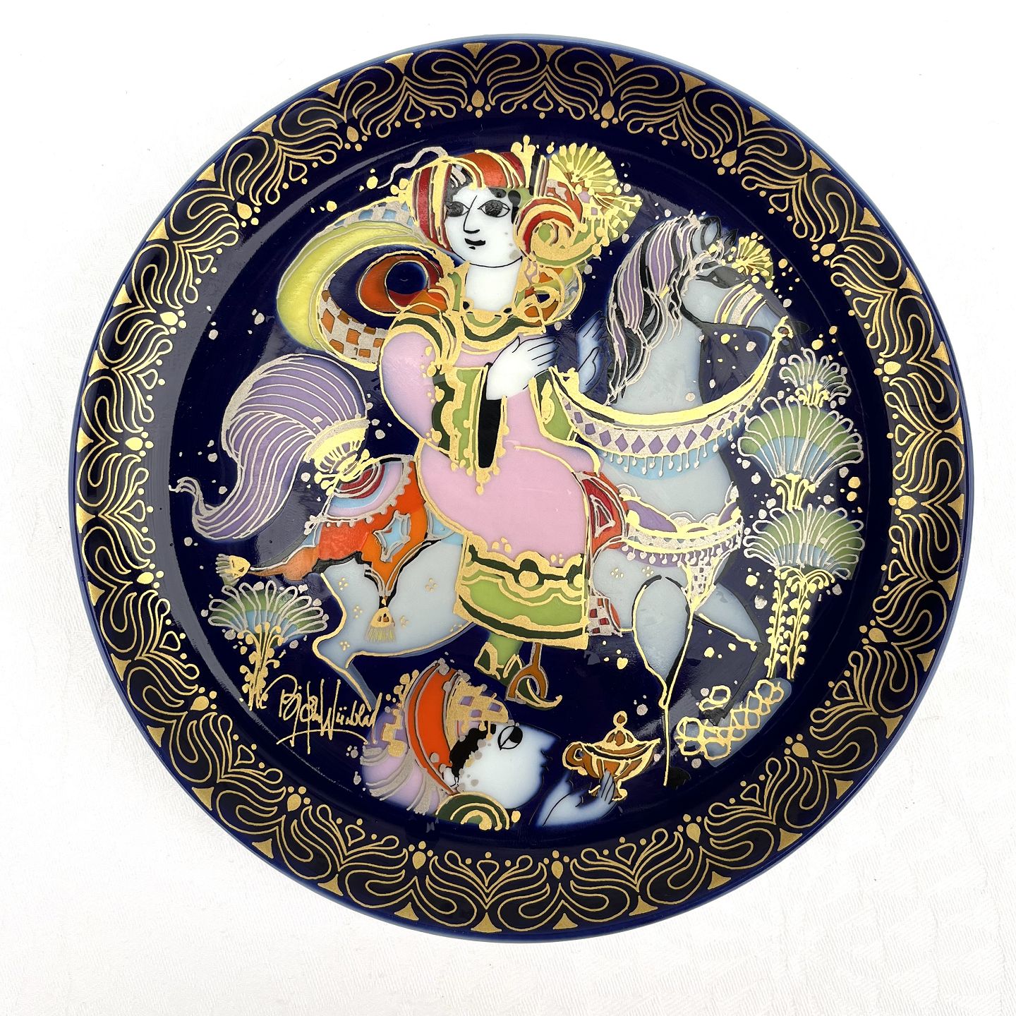 Bjørn Wiinblad, Aladin und die wundervolle Lampe, Motiv 9, Aladin reitet zum Sultanspalast, 16,5 cm Durchmesser * Perfekter Zustand *