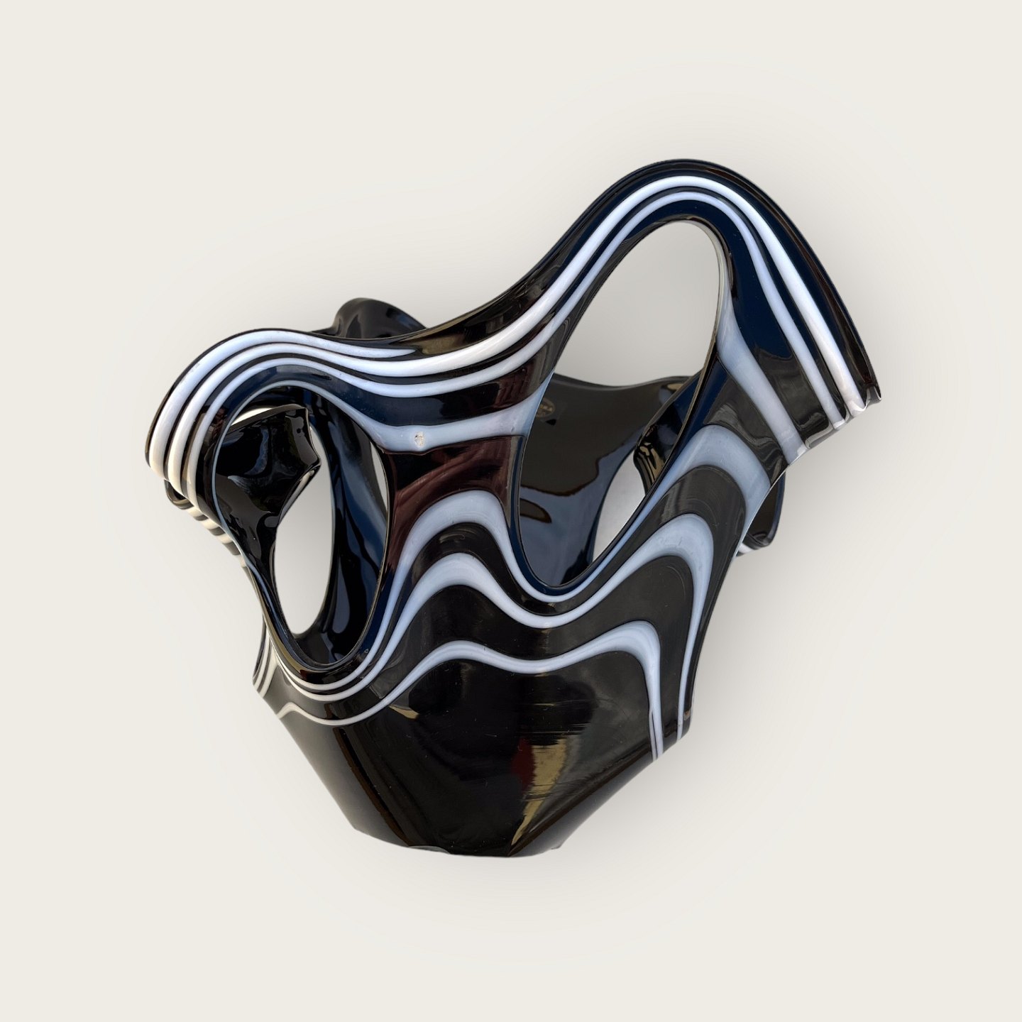 Große Skulpturenvase aus polnischem Glas, schwarzes und weißes Glas, 26 cm hoch, ca. 31cm breit, Makora Polen *Perfekter Zustand*
