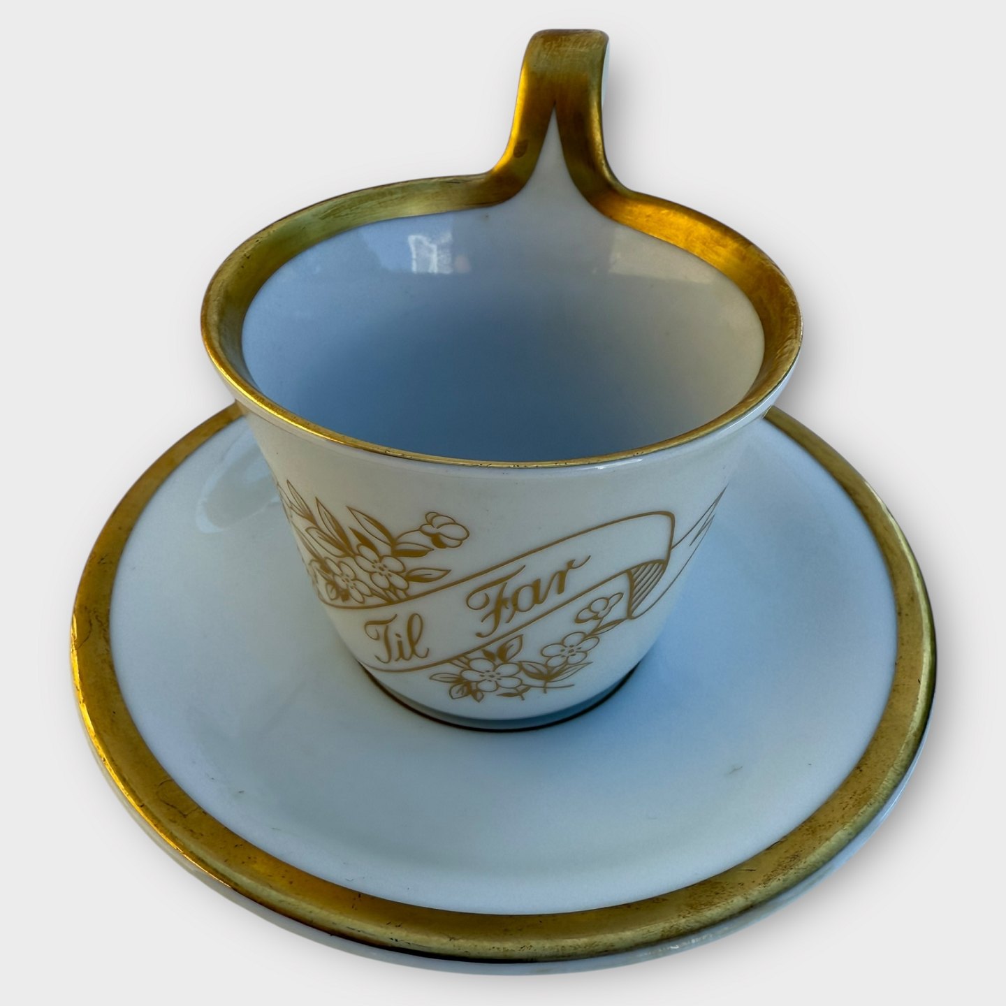 Bing & Gröndahl, Tasse mit hohem Henkel, Für Vater, Nr. 485, Tassendurchmesser 8 cm, Höhe 6,5 cm, guter Zustand