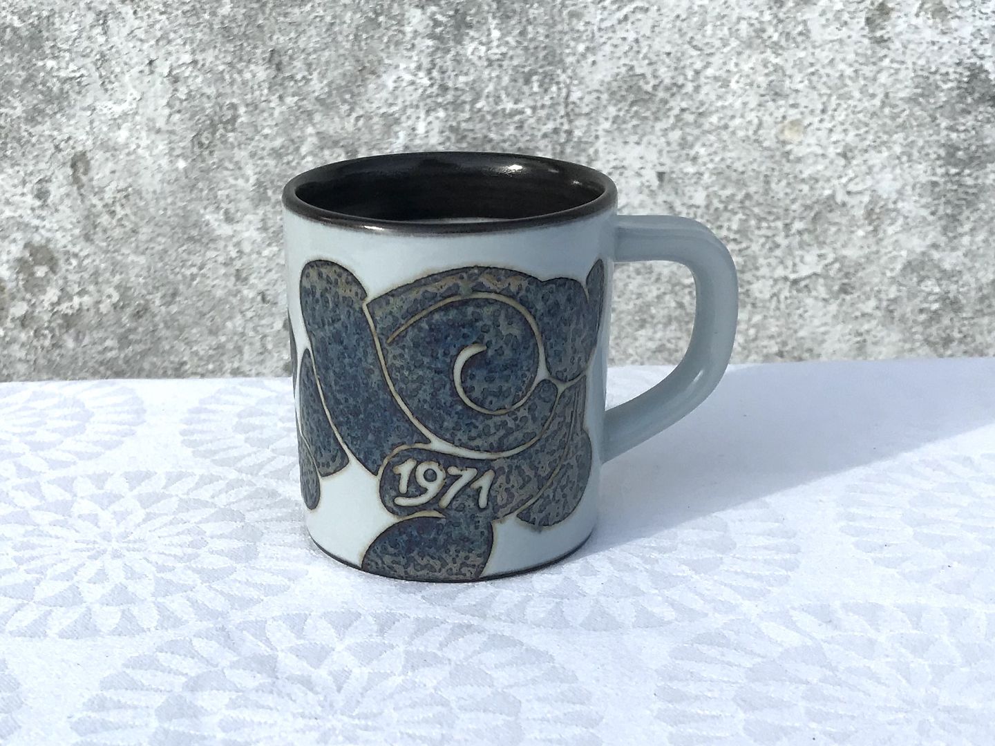 Royal Copenhagen, Aluminia, lille årskrus, 1971, 7,5cm høj, Design Hans Andersen *Perfekt stand*