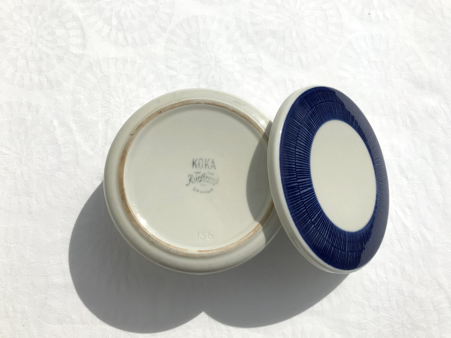 Rørstrand, Blue koka, Butter bowl # 156, 13cm in diameter, 7.5cm high, Design Hertha Bengtsson * Nice condition *