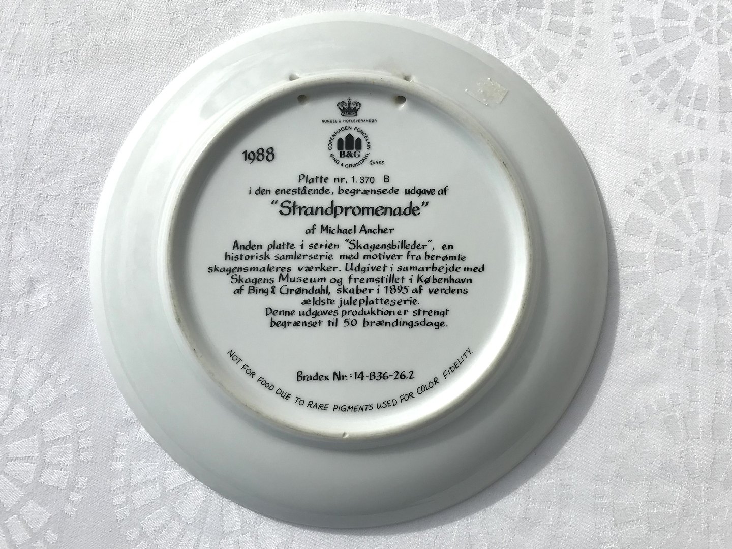 Bing & Grondahl, Skagensmalerne, 1988, Plate no. 6, “Strandpromenade”, Michael Anker, 21cm in diameter, *Perfect condition*