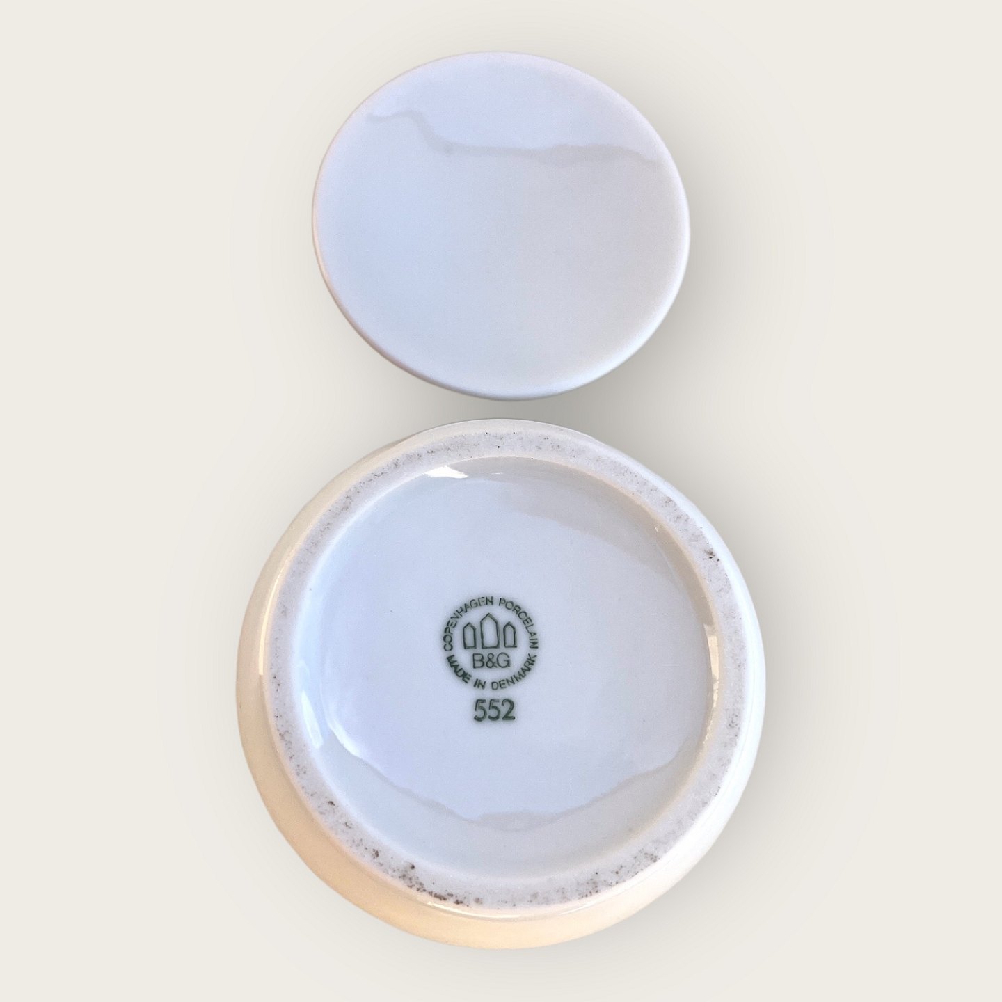 Bing & Grøndahl, Hvid Koppel, Sennepskrukke #552, 7cm i diameter, 5cm høj, Design Henning Koppel *Pæn stand*