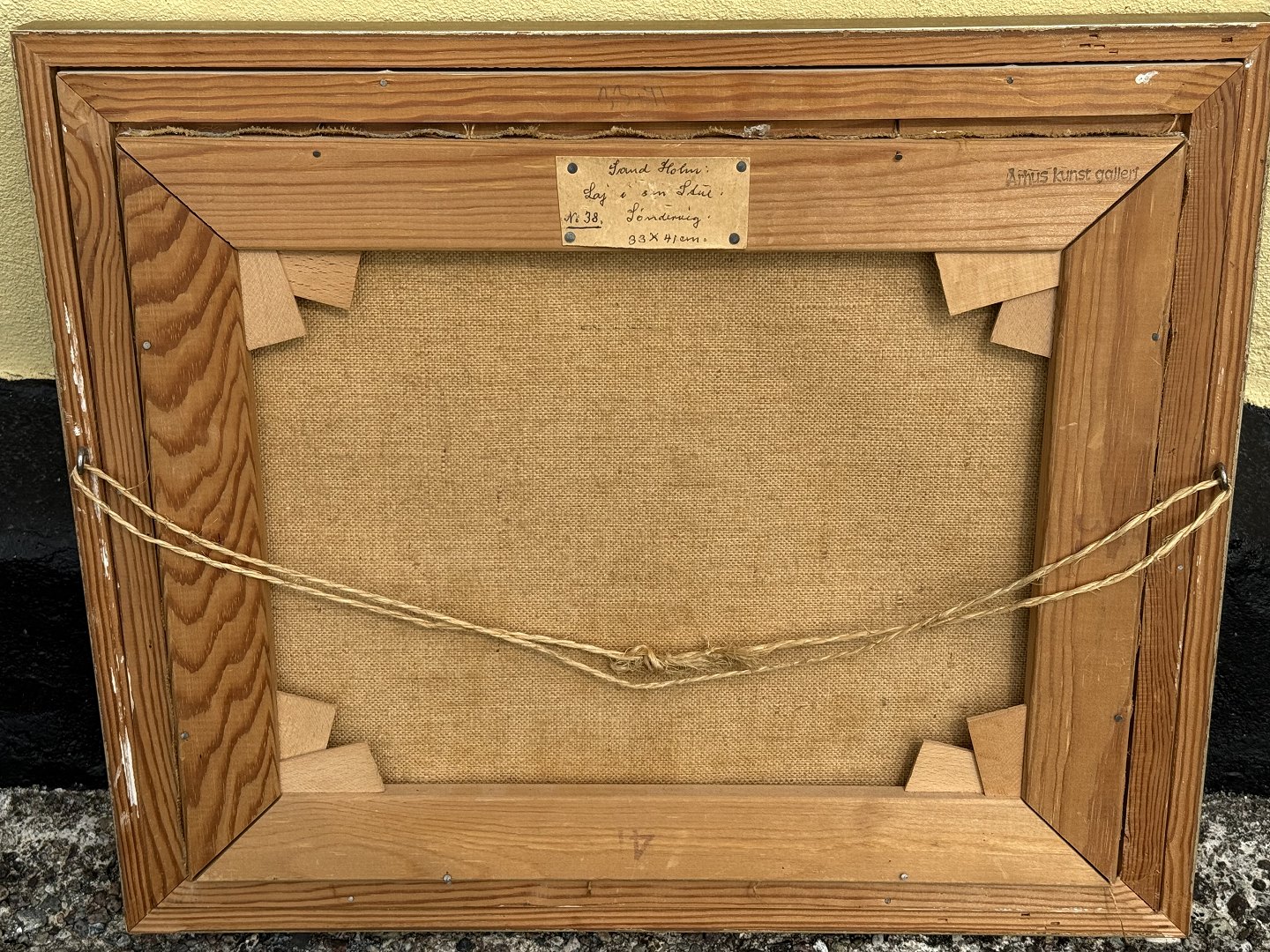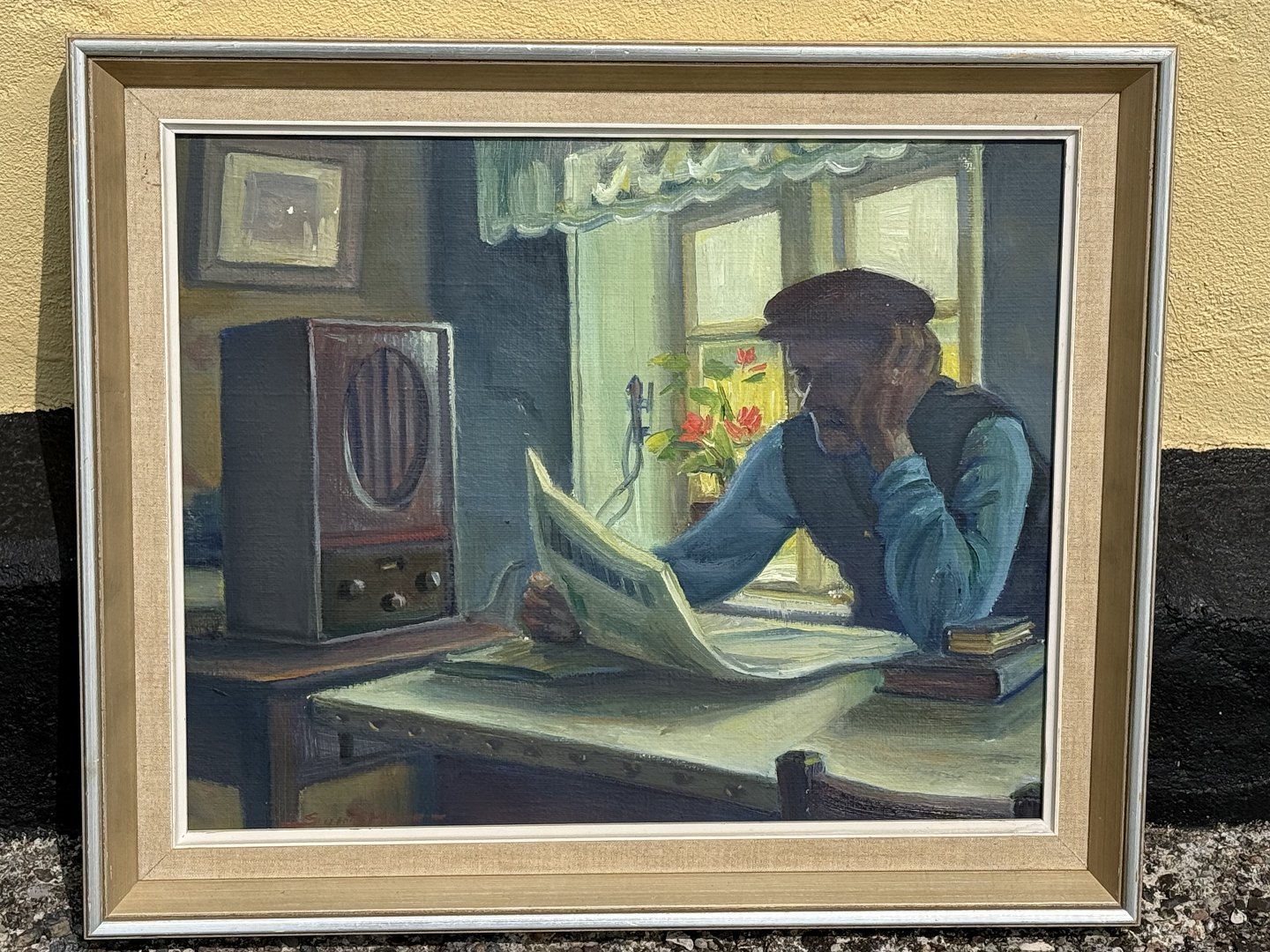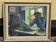 Svend Holm, Oliemaleri på lærred, på seddel på bagsiden påskrevet: Svend holm, Kaj i sin stue, Nr. 38 Søndervig, 33x41cm, samt stemplet fra Århus Kunstgalleri, mål med ramme 41x49cm