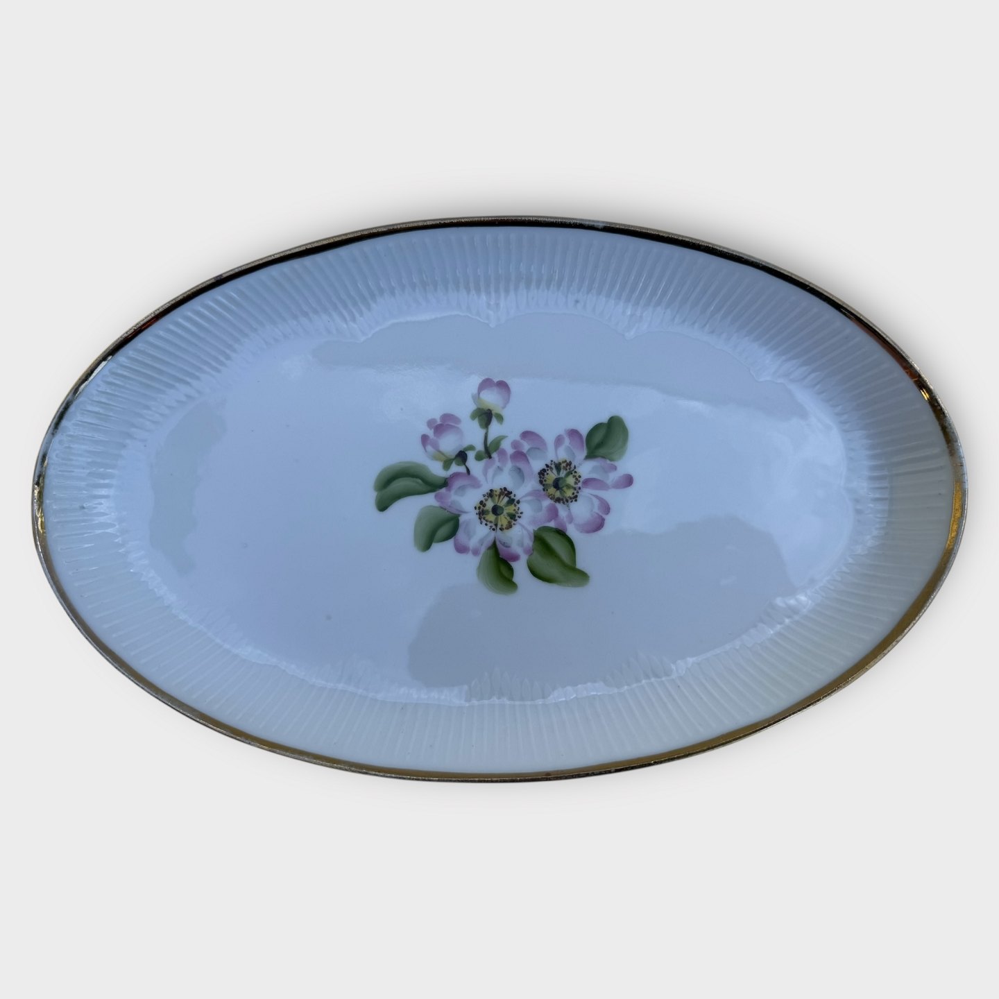 Bing & Grøndahl, Prinsesse Margrethe, Æbleblomst, Lille ovalt fad, 26,5cmx16,5cm *Lidt slid på guldkant ellers pæn stand*