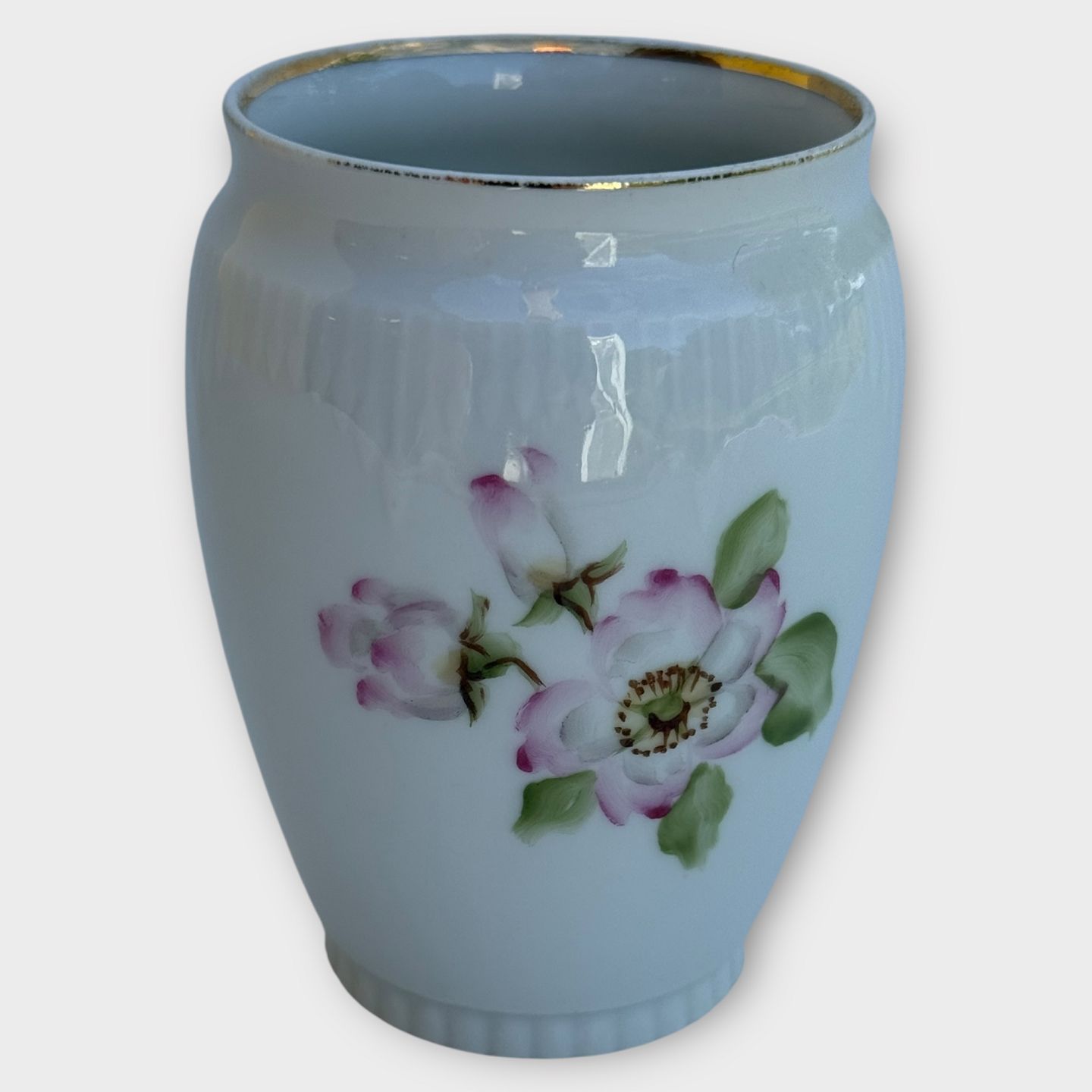 Bing & Grøndahl, Prinsesse Margrethe, Æbleblomst, Lille vase, 9,5cm høj *slid på guldkanten ellers pæn brugt stand*