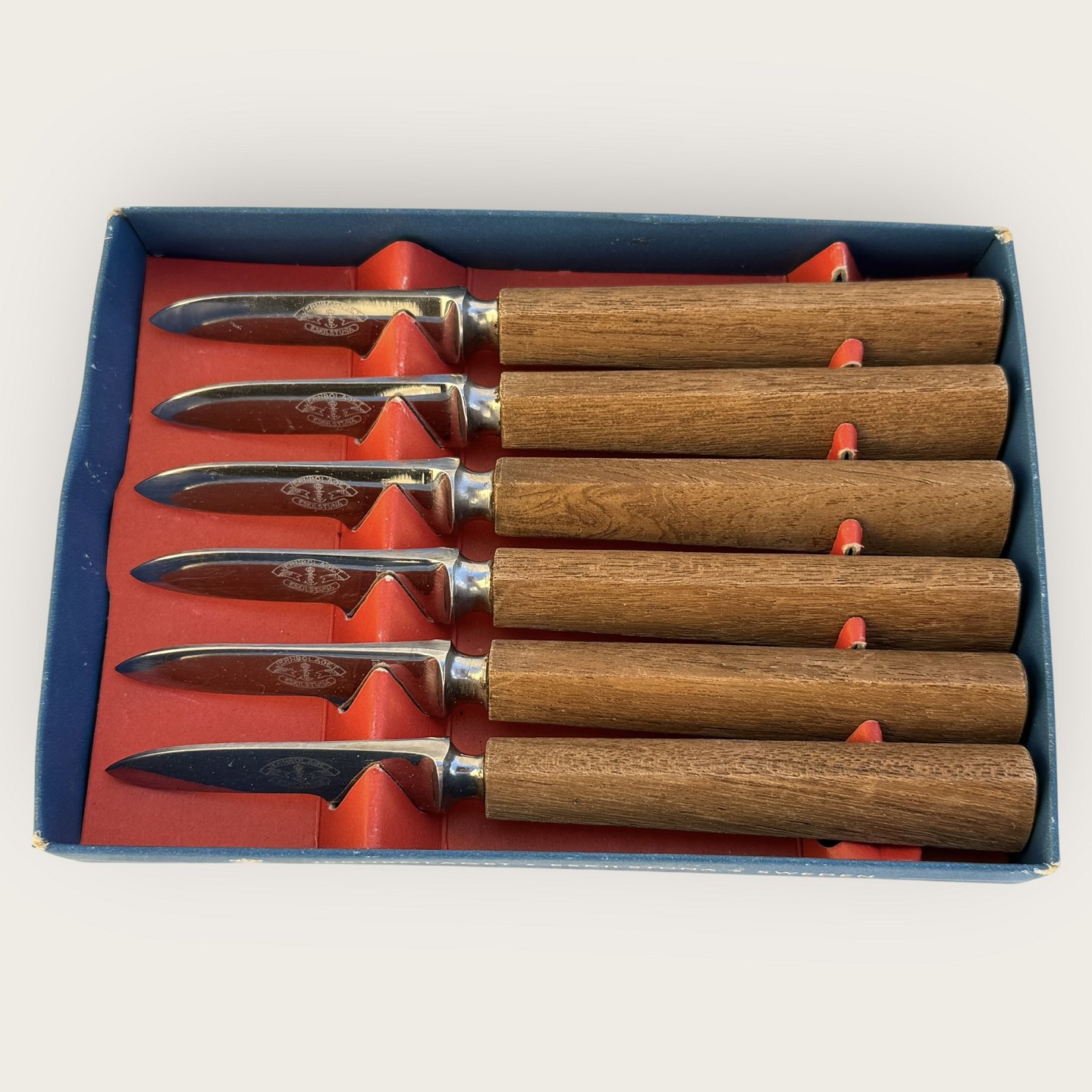Jernbolaget Eskilstuna, Sverige, krebse knive med teakskafter, længde 14,5cm, pæn stand