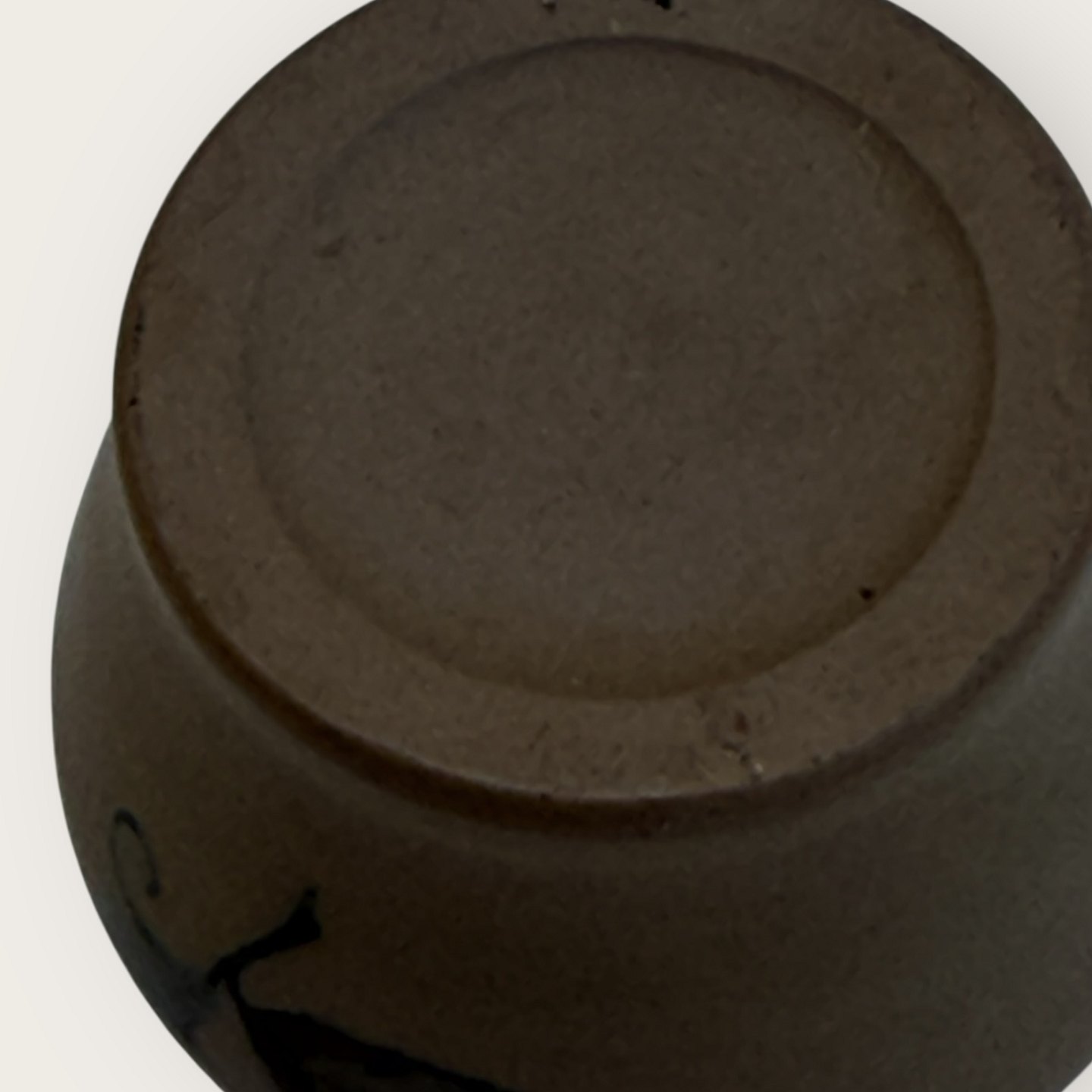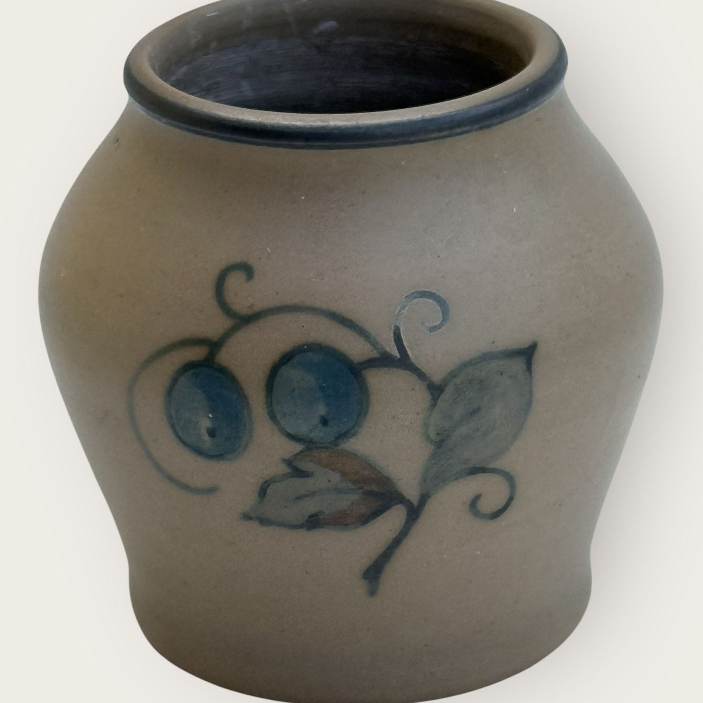 Bornholm ceramics, Hjorth, Brown stoneware, Small Vase, With berries and leaves as motif, approx. 5x5cm *nice condition*