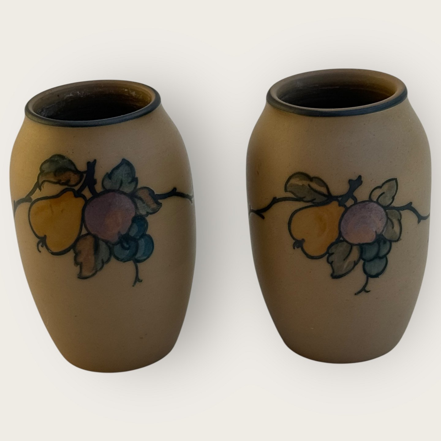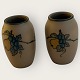 Bornholmsk keramik, Hjorth, Brun stentøj, Vase, Nr.160, Med frugt motiv, 8cm høj, *pæn stand*