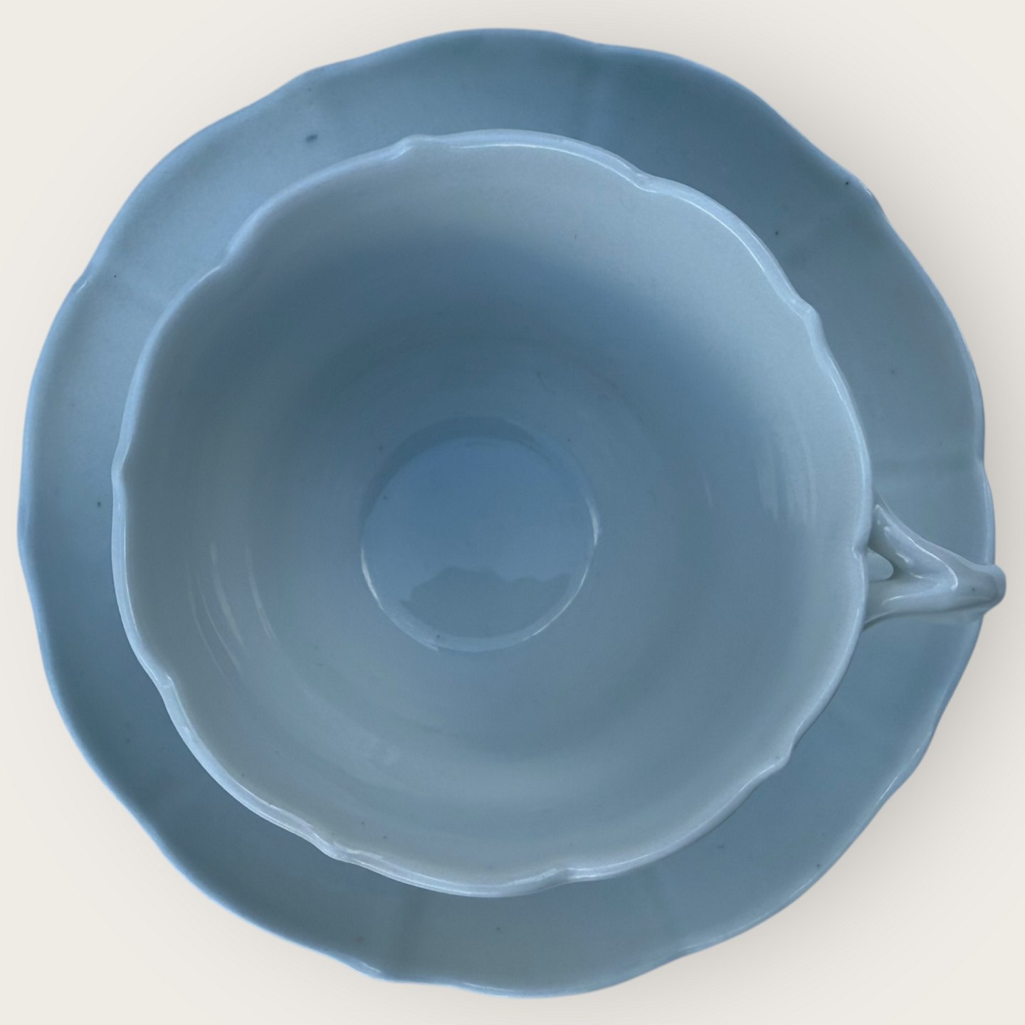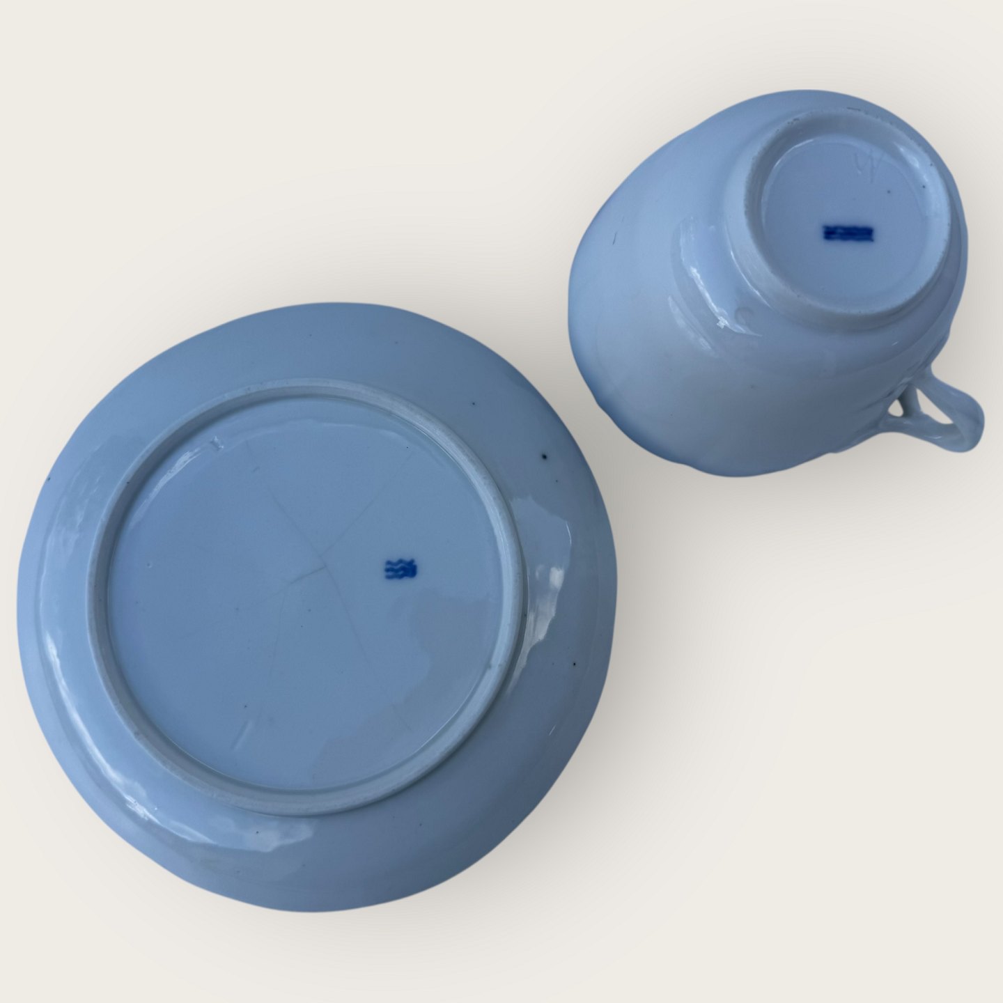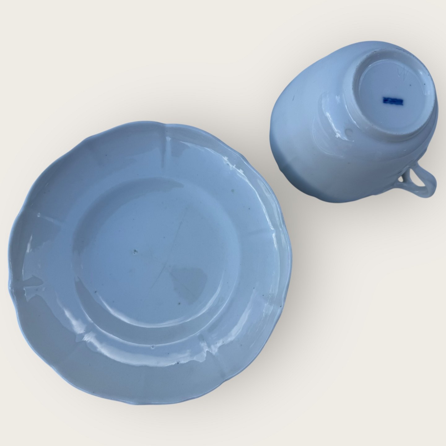 Royal Copenhagen, Hvid stor kop, Antik, 8,5 cm høj og 10 cm i diameter, kop i pænstand, men undertallerken med lille stjerne/sprække (se foto).