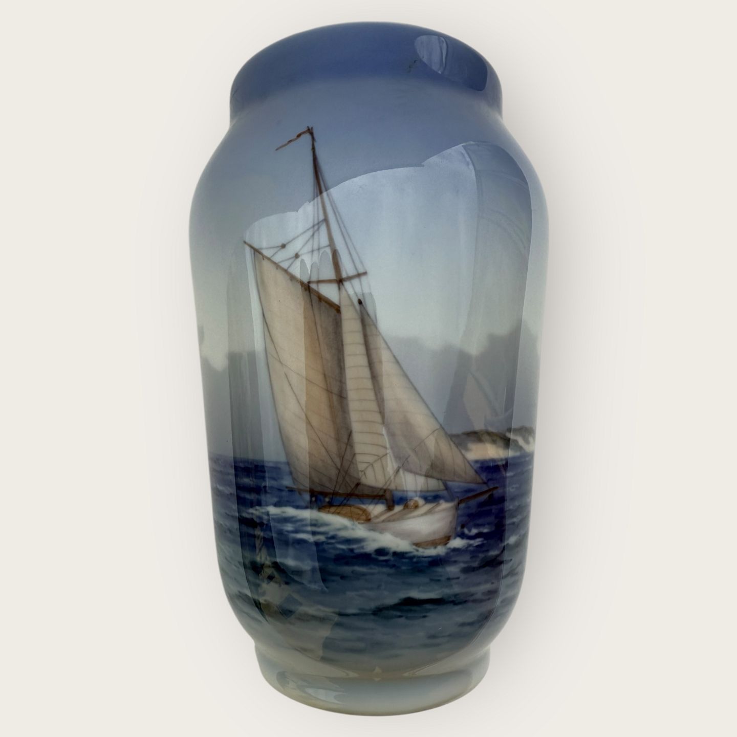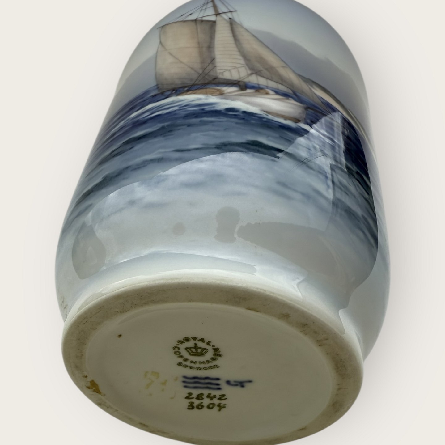 Royal Copenhagen, Vase #2842/3604, Sejlskib, 21cm høj, 2.Sortering *Pæn stand*