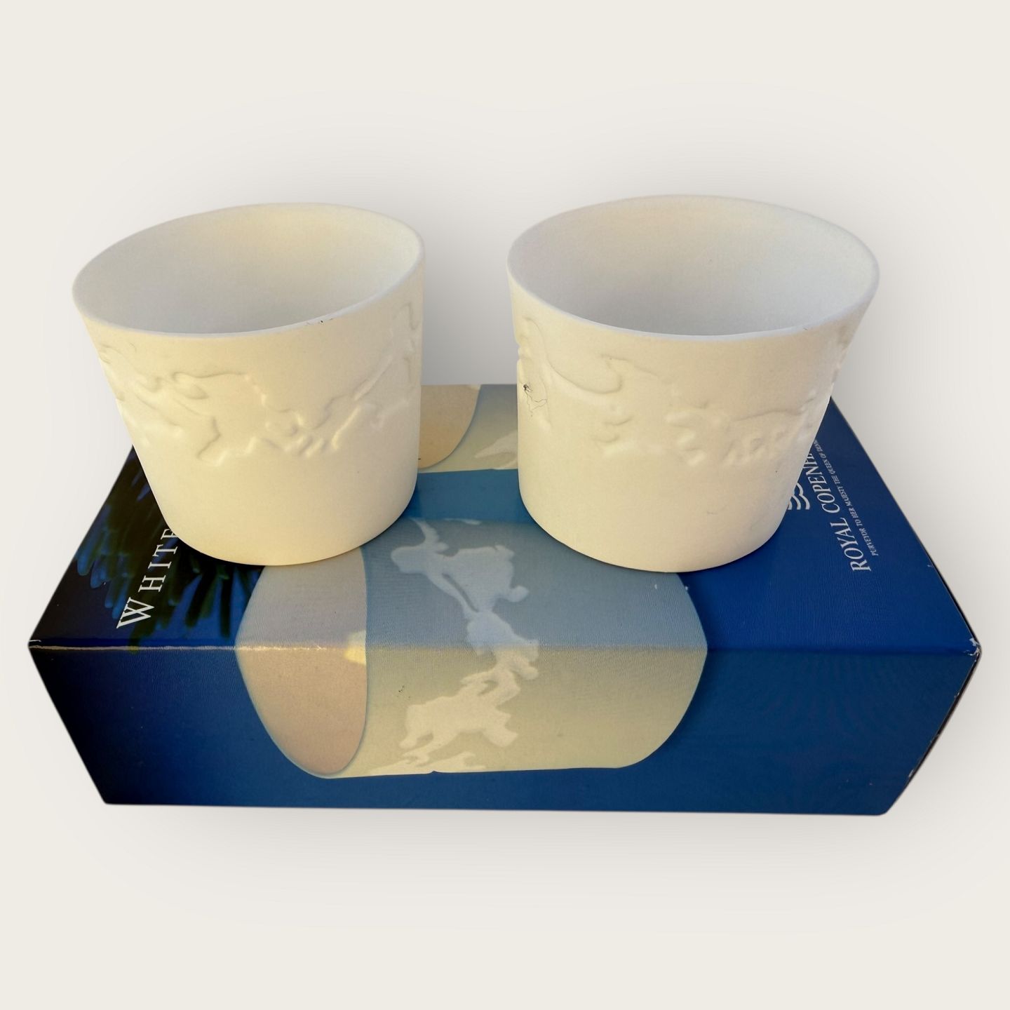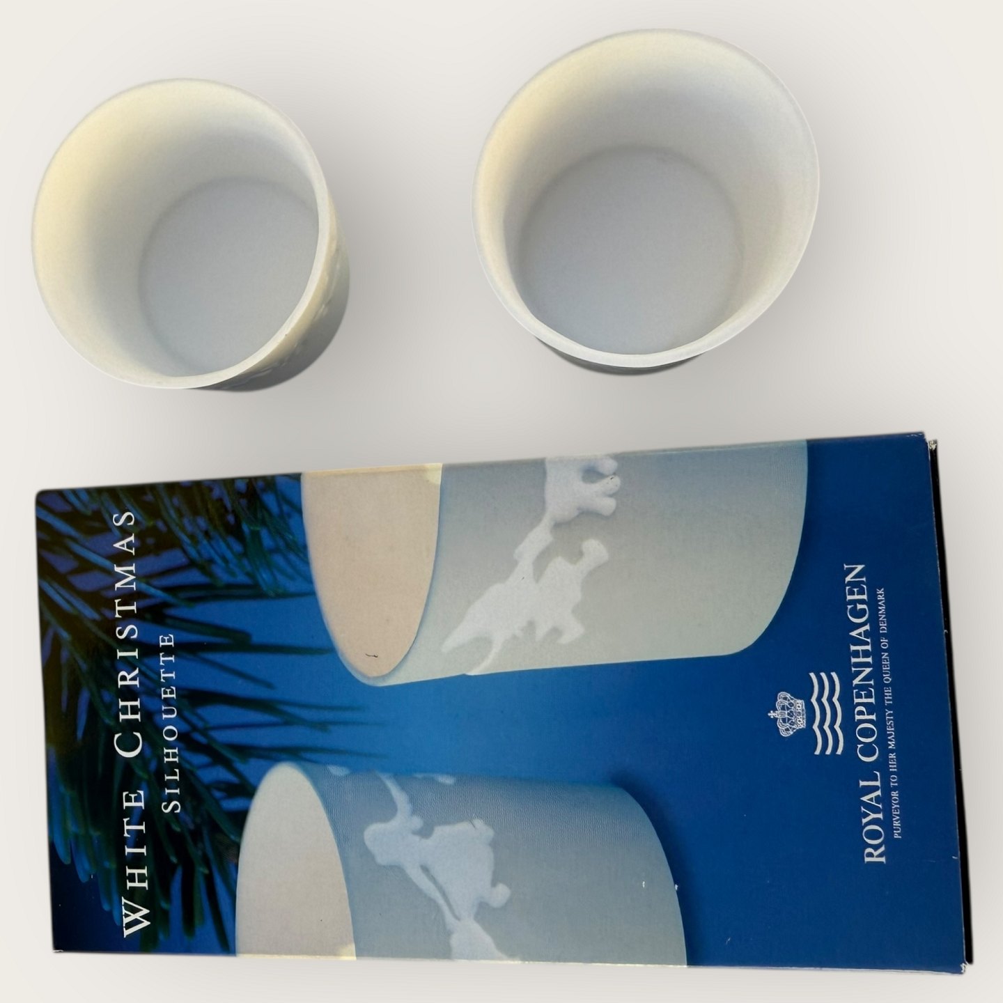 Royal Copenhagen, Silhouette, fyrfadslyssestager med dansende nisser, 2 stk i originalæske.