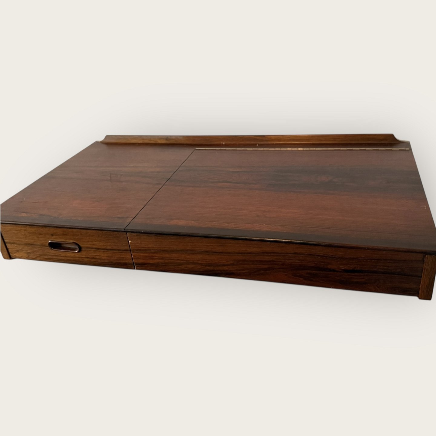 Væghængt sminkemøbel / skrivemøbel i palisander, Danish modern fra 1960'erne. Mål: 91x50x25cm *Fremstår i rigtig pæn brugt stand*
