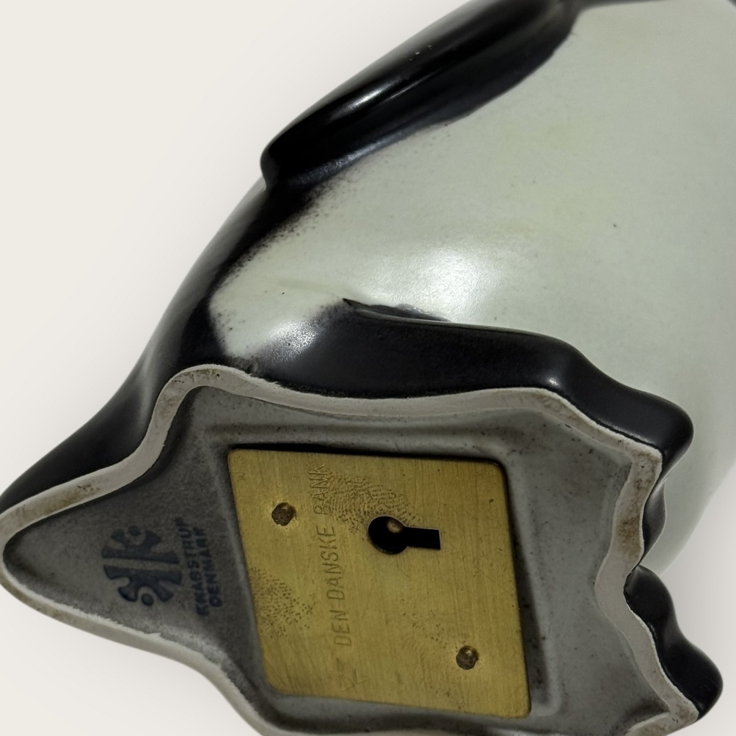 Knabstrup keramik, Sparebøsse pingvin, Pondus fremstillet for Den Danske Bank, 27cm høj, pæn stand men mangler nøgle.