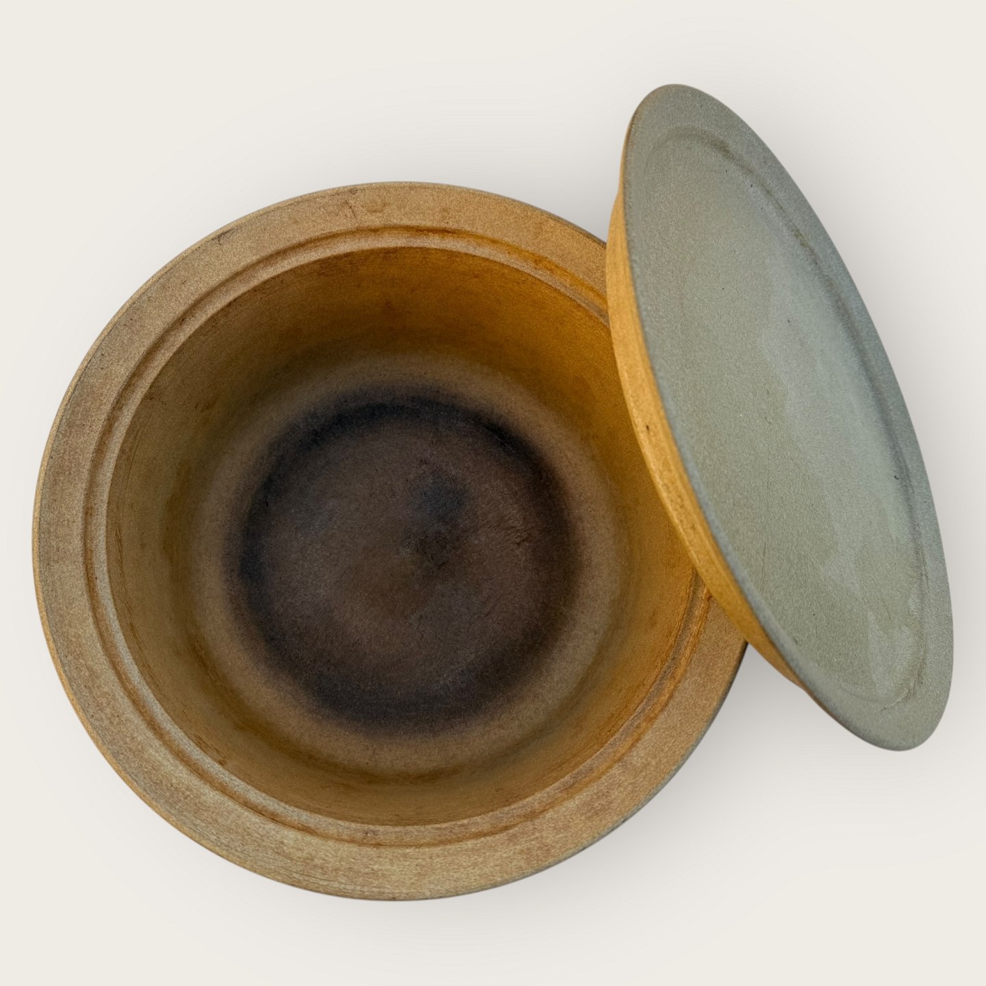 Royal Copenhagen, Ildpot, Stor gryde med låg, #22506 og # 22514, 29cm i diameter og 13,5cm høj, 1. sortering, Design Grethe Meyer * Meget lille afslag på låget (se foto) og noget mørk under bunden ellers pæn brugt stand*