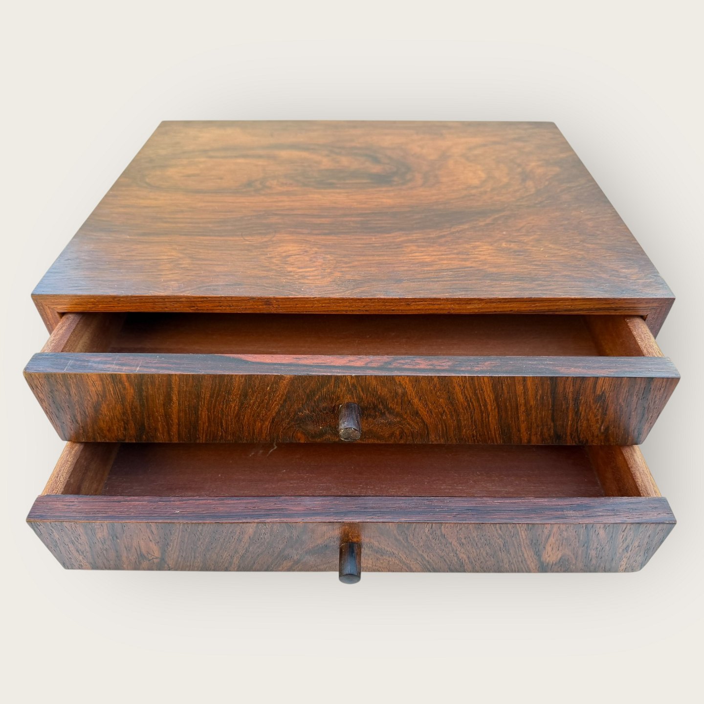 Rosewood chest with 2 drawers, Danish modern from the 1960s, appears in very good condition with few signs of wear, Dimensions: 32x25x12cm