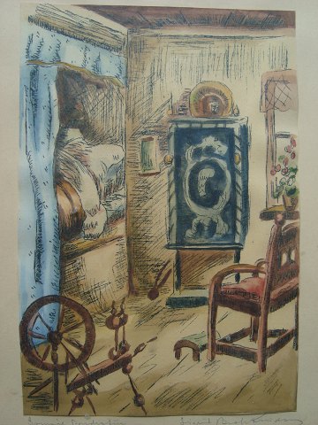 Sigrid Bech-Knudsen (1864-1948): "Samsøe Bondestue" Sign.: Sigrid Bech Knudsen 23x15 (32x24)