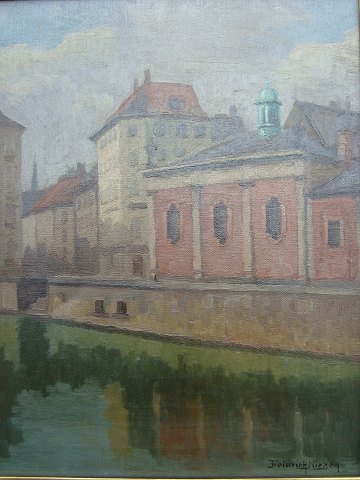 Parti fra Frederiksholms Kanal med "Store Skriftestol" midt i billedet.