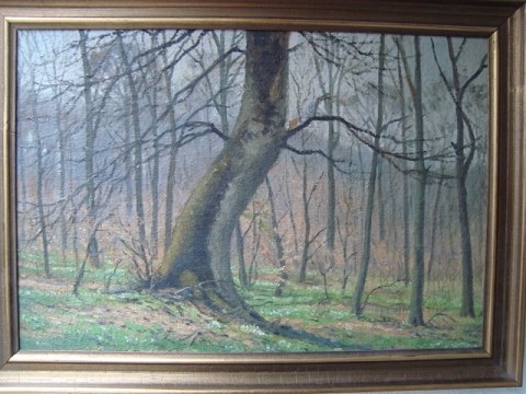 Ubekendt kunstner (20 årh): Forårs skovbund med anemoner. Olie på lærred. Sign.: Junker 34x50 (42x58) Virkeligt dejligt maleri i skønne farver.