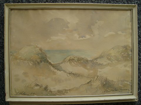 Aksel Lundgreen (1908-89): Klitparti fra Løkken 1955. Akvarel og bly på papir. Sign.: Aksel Lundgreen Btegnet - Løkken 55. 30x42 (32x44)