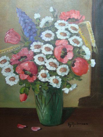 Hjalmar Andersen (født 1892): Blomster i vase. olie på lærred. Sign.: Hj. Andersen 50x40 (57x47)
