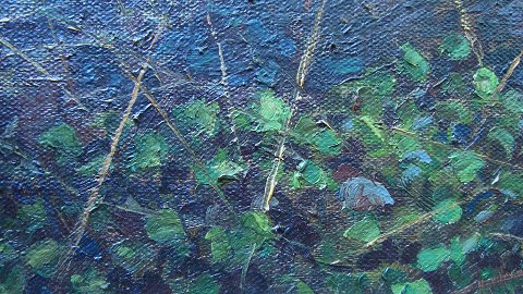 Et meget spændende maleri - rigt detaljeret med græs, grene, blade og ikke mindst fuglen - en skov sneppe.