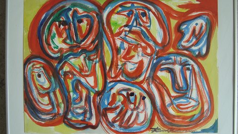 Finn Pedersen (1944-2014): Komposition med ansigter. Akvarel på papir. Sign.: Finn Pedersen. Indrammet uden glas. 36x51 (61x51)