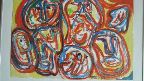 Finn Pedersen (1944-2014): Komposition med ansigter. Akvarel på papir. Sign.: Finn Pedersen. Indrammet uden glas. 36x51 (61x51)