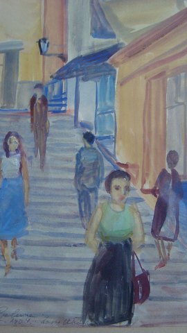 Betegnet: Trappegade i Palma, Mallorca Septb 1954 (bly).