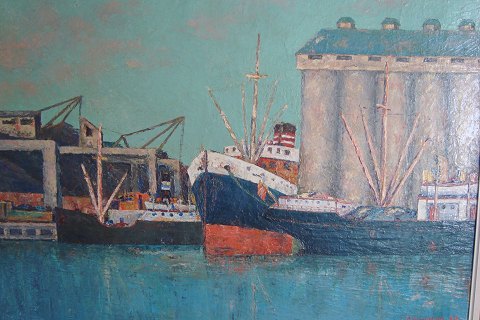 Selmer Emmanuel Ammitzbøll Olsen (1898-1983): Havneparti fra industrihavn 1938. Olie på lærred. Sign.: Ammizbøll 38. Indrammet i nyere guldramme. 68x98 (82x112)