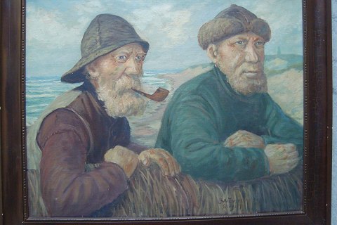 Emil Weinrich (1892-1975): To fiskere på Skagen. Sign.: E. Weinrich Betegnet - Skagen. Olie på lærred. 49x61 (60x72)
