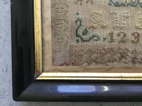 Broderet navneklud. 19. århundrede. Broderet af "Marie Jensen. Indrammet i original ramme omkring 1850. 42x42 (51x51)