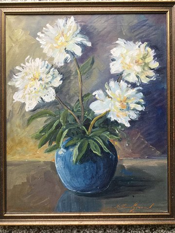 Aksel Lundgreen (1908-89): Blå vase med hvide pæoner. Olie på lærred. Sign.: A. Lundgreen 58x46 (64x53)