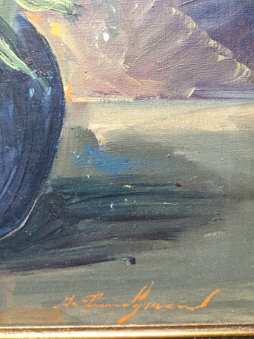 Aksel Lundgreen (1908-89): Blå vase med hvide pæoner. Olie på lærred. Sign.: A. Lundgreen 58x46 (64x53)