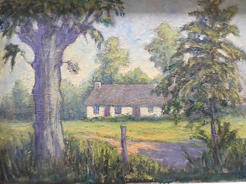 Ewald Herrik (1907-94): Mme. Aigles Hus. Olie på plade. Sign.: Herrik samt utydelig datering. 48x65 (55x72) 36116