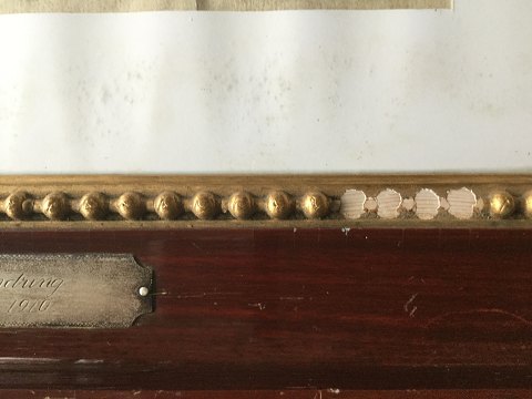 Nusset passepartout og ramme med defekter og sølvplakette "Til Erindring 18' april 1910".