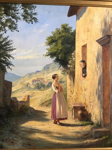 Sydlandsk landskab med kvinde ved kloster