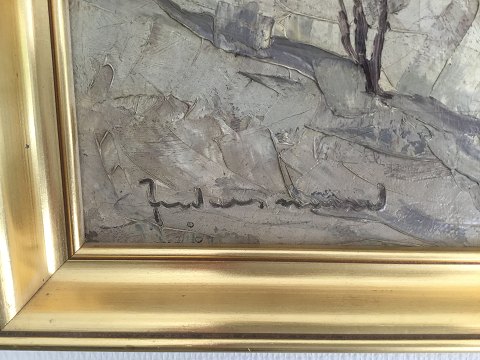 Anders Norre (1899-1960): Fra Vinter Sandstormen. Olie på lærred. Titel bagpå blindramme. "No 39" bagpå lærred Sign.: Anders Norre. Nyere ramme. 41x51 (48x58)