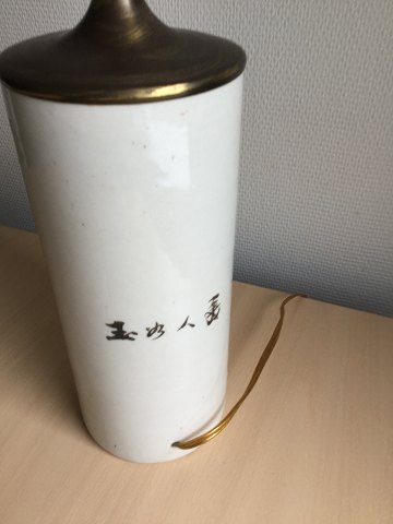 Antik Hatstand lampe. Kina 19 årh. Polykromt dekoreret med personer i landskab. Uden stempel Højde uden messingmontering - 28 cm. Diameter - 11½ cm. Der er gennemboring til ledning.