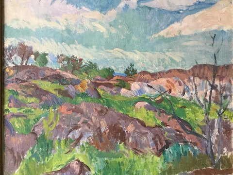 Ubekendt kunstner (20 årh): Landskab. Olie på lærred. Sign.: Usigneret Meget smukt maleri i skønne farver i en ældre ramme. Har tidligere været solgt hos Bruun Rasmussen. 78x89 (88x99)