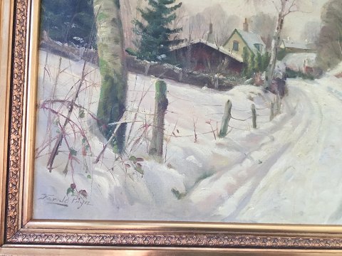 Harald Pryn (1891-1968): Vinterparti fra Hareskoven. Olie på lærred. Bagpå betegnet - Skovbrynet Hareskov" Sign.: Harald Pryn 50x70 (67x87)